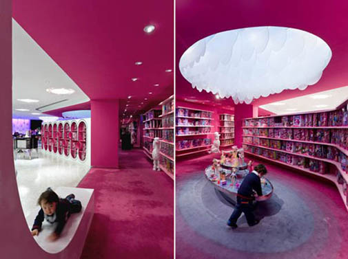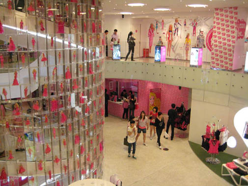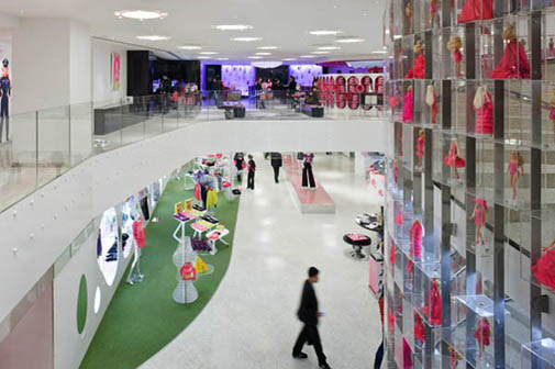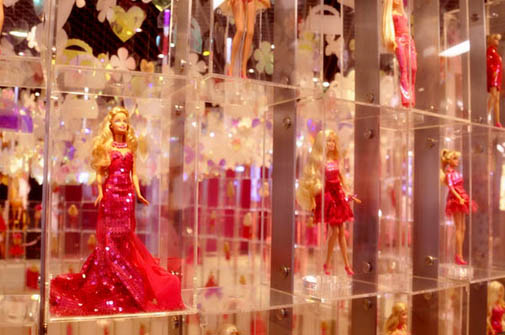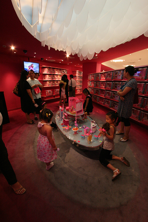 В новом магазине Barbie в Шанхае объединились все атрибуты бренда: от куклы до архитектуры здания. Одежда и аксессуары, куклы, игрушки, упаковка, реклама, иллюстрации всех Barbie-времен и Barbie-народов, женские интерпретации всяких разных штук, неподвластных мужскому мозгу – все есть тут.