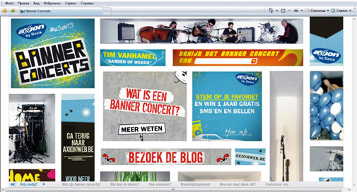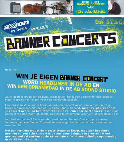 Это единственный сайт в интернете, который состоит только из баннеров. Можно посмотреть любой концерт и проголосовать за любимый бэнд. По результатам голосования, группа-победитель выступит в Ancienne Belgique – одном из крупнейших концертных залов Голландии.