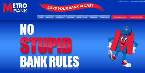Новый молодой банк Metro Bank был запущен под руководством американца Вертона Хилла, который в свое время основал Commerce Bank в США, который был и остается «самым удобным банком Америки».