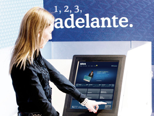 Испанский банк BBVA, считающийся одним из самых инновационных в мире пошел на создание особого терминала самообслуживания и потратил 4 года на эту программу. В результате, новое устройство значительно расширило функционал банкомата, переняв некоторые функции банковского служащего. Новый банкомат имеет удобный интерфейс с интерактивным помощником, конструкция терминала предполагает внесение и получение наличных, выписок через единый слот, управление через сенсорный экран и также особую эргономику, которая добавляет ощущение безопасности. Данное устройство, вместе с особым дизайном и функционалом рабочего места менеджера стало основой для создания банковского отделения нового формата. В примере с BBVA, значительные инвестиции в технологии помогли банку радикально улучшить хореографию клиентского визита.