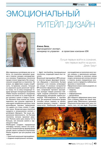 В августовском номере журнала Promaison вышла статья Елены Лепа, менеджера по управлению проектами IDNT и ритейл-эксперта. Лена недавно присоединилась к нашей команде.
